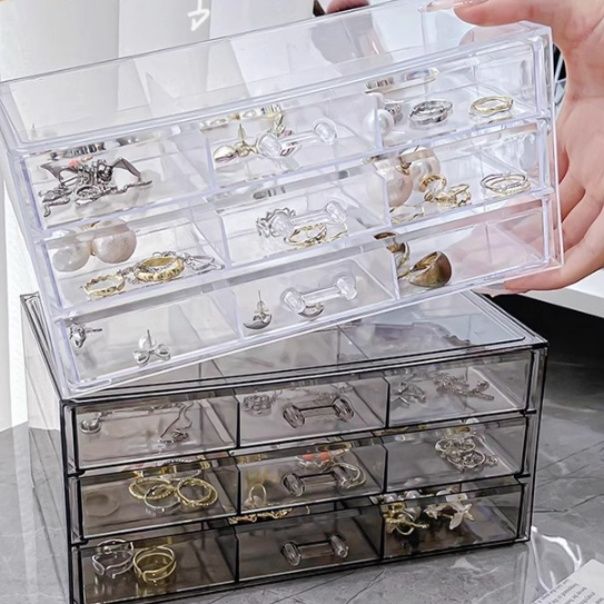 透明な多段引き出し式のグッズ収納ケースで、アクセサリーや小物を美しく整理できます。