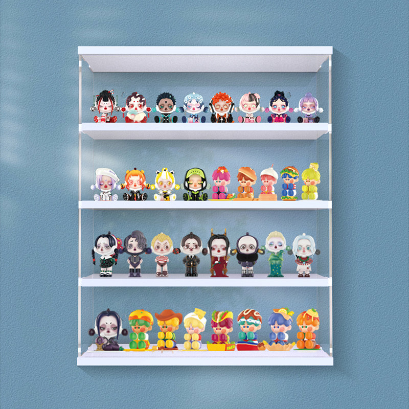 四段の棚板で小型のフィギュアやミニチュアを整理整頓しながら飾ることができます。