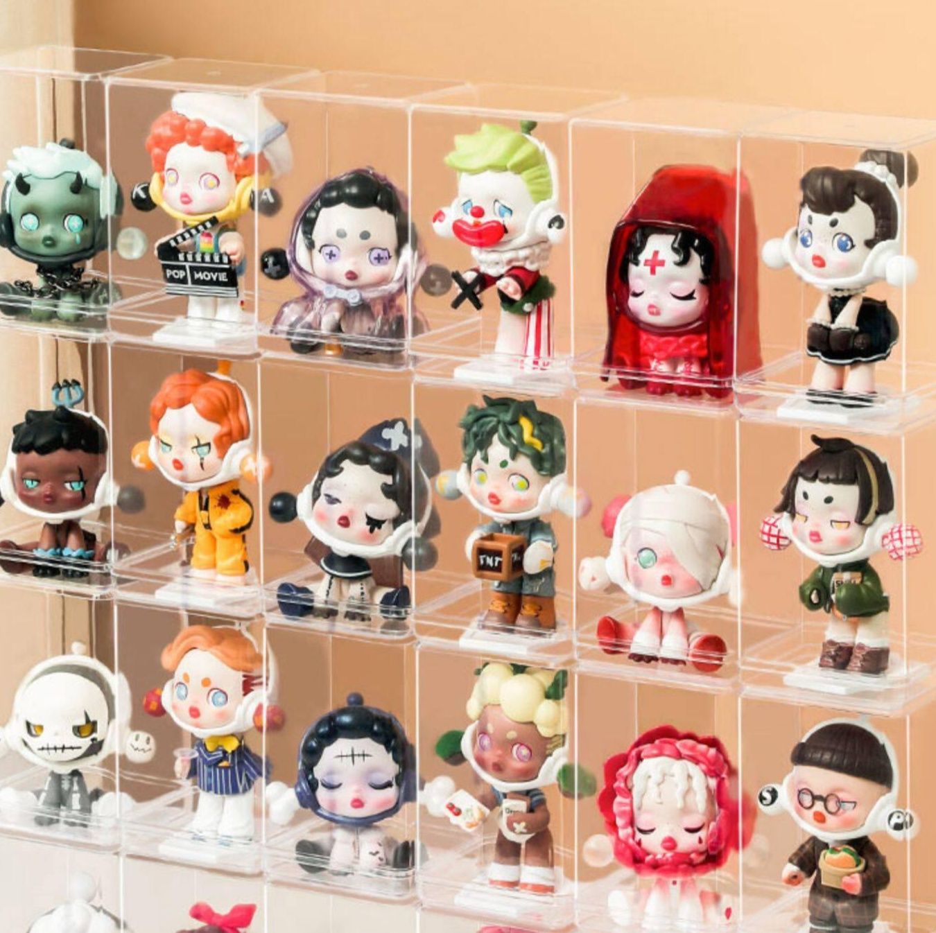 大切なフィギュアやミニチュア人形を美しく飾れるディスプレイケースです。 透明なアクリル素材を使用し、全方向から中身を鑑賞できる立方体型の設計になっています。 複数個を積み重ねて自由にレイアウトでき、グッズ収納としても最適です。 防塵効果があり、コレクションを埃や汚れから守ります。 組み合わせ次第で壁面収納やデスク上のおしゃれなインテリアとしても活躍する便利なアイテムです。
