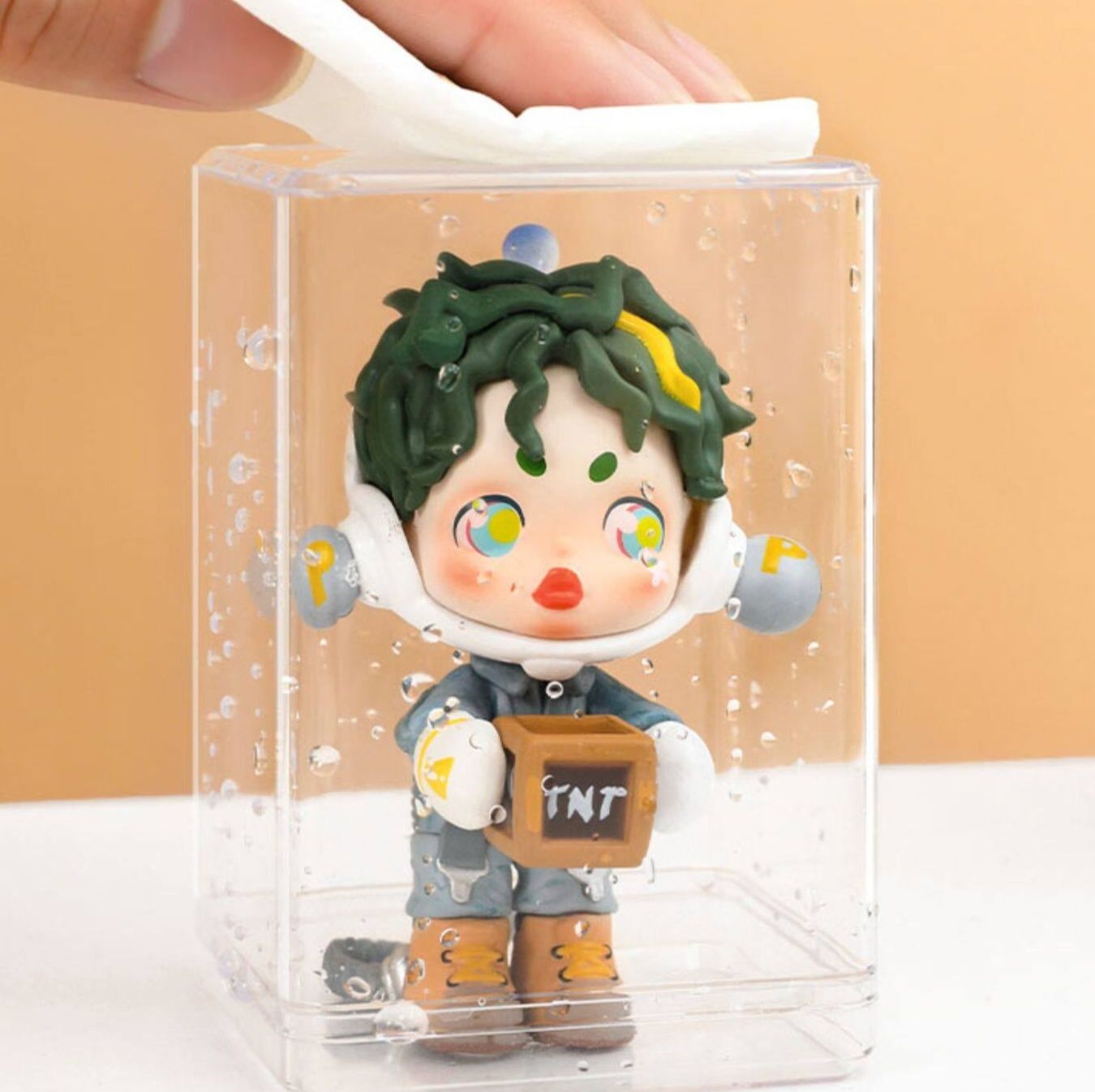 透明なアクリル素材を使用し、全方向から中身を鑑賞できる立方体型の設計になっています。